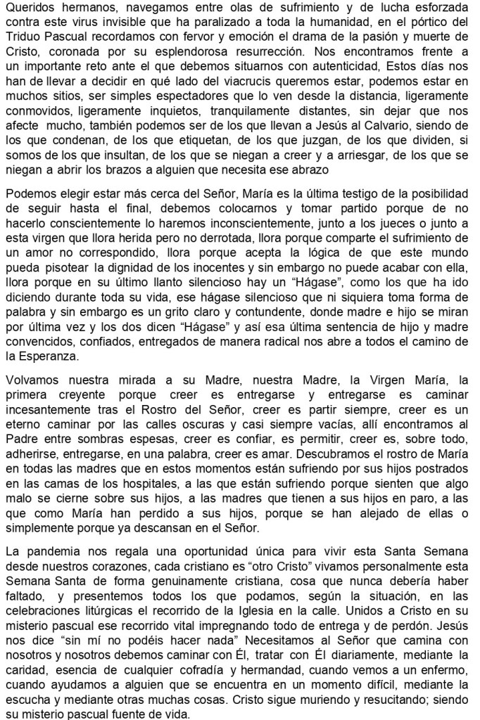 El domingo 21 de noviembre, tras la eucaristía de 11:00h en la iglesia de San José, tenía lugar la Asamblea Extraordinaria de la cofradía de «Nuestra Señora de la Piedad», convocada por el presidente Juan Carlos Aso con el único punto de elegir una nueva junta para la asociación.
